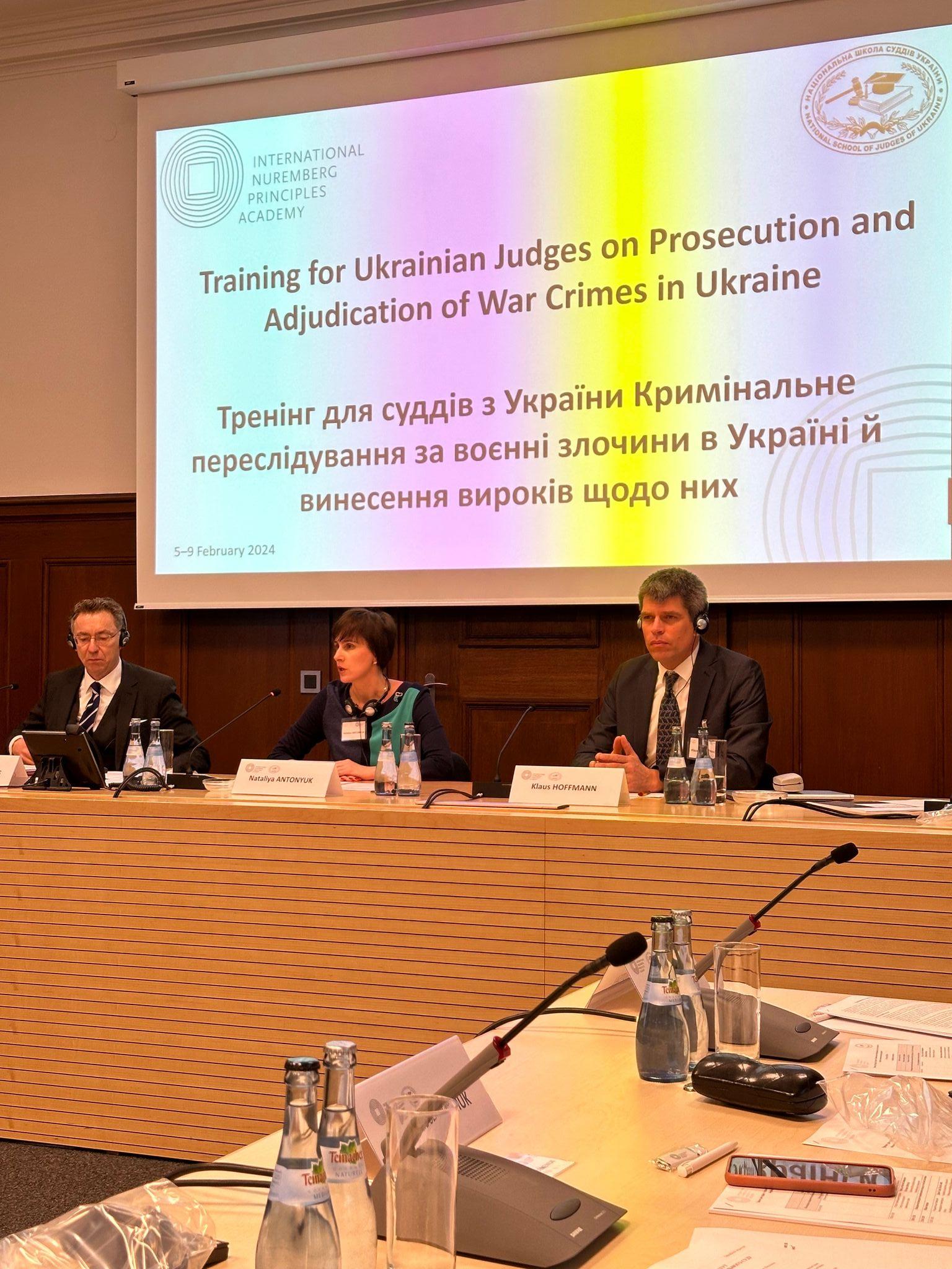 Тренінг для суддів з України «Кримінальне переслідування за воєнні злочини в Україні й винесення вироків щодо них» організовано Національною школою суддів України у співпраці та на запрошення Міжнародної академії Нюрнберзьких принципів.
