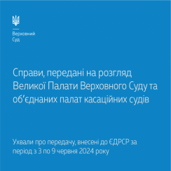 Ділимося з вами інформацією про справи, передані на розгляд Великої Палати та об’єднаних палат касаційних судів відповідно до ухвал про передачу, внесених до ЄДРСР з 3 по 9 червня 2024 року.