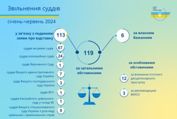 Протягом січня – червня 2024 року Вища рада правосуддя ухвалила рішення щодо звільнення 134 суддів.