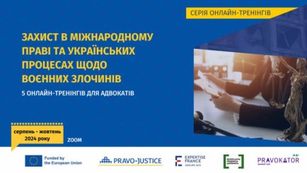 Проєкт ЄС "Право-Justice" спільно з Координаційним центром з надання правничої допомоги розпочинає серію онлайн-тренінгів, присвячених захисту в міжнародному праві та українських процесах щодо воєнних злочинів.