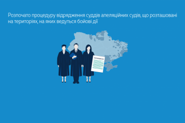 На сайті Верховного Суду оприлюднено Оголошення про початок процедури відрядження суддів апеляційних судів, що розташовані на територіях, на яких ведуться бойові дії, територіальну підсудність яких було змінено розпорядженнями Голови Верховного Суду.